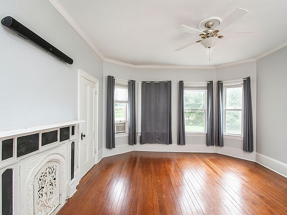 Porch living at it's best! Beautiful 3 bedroom 2 full baths on FIRST floor of huge 3 family in Victorian home 1 block from the water & marina with park and ball field half a block away. Owner's former unit: complete with all the bells and whistles. Light filled apartment, HUGE ROOMS all with high ceilings, wood floors, tile baths. Entire apartment was painted a light grey so please note that is different that these pictures, which are a few years old. Tile radiant heated kitchen with quartz countertops, large pantry, laundry in bath with washer/dryer hookups, whirlpool tub, circular turret in 1 bedroom, 2 rooms have original ornamental fireplaces. Quiet neighborhood, great school system. 1.5 acre grassy lot. Includes driveway parking. Available Oct 1, 2025. $3200 plus utilities, security & last with 1 year lease. No inside smoking or pets. Owner Pays for water. Tenant responsible for gas (stove) and electricity. Owner responsible for lawn upkeep and snow removal on driveway only.