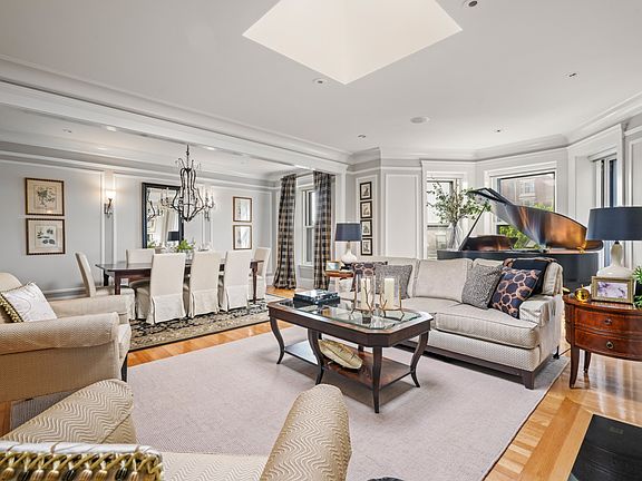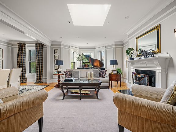 Rarely available 4-bedroom, 4.5-bathroom Penthouse triplex residence on picturesque Marlborough St with 2 tandem garage parking and direct elevator access to all floors. The magnificent front facing living and dining room is complete with high ceilings, a gas fireplace, large skylight and an elegant bay window with beautiful views overlooking tree-lined Marlborough St. The chef's kitchen is equipped with custom cabinetry, stainless appliances, a large island and opens to the bright and sunny great room featuring another large skylight. The primary suite has a tall bay window overlooking Marlborough St, fireplace, 2 large walk-in closets and a luxurious five-piece marble ensuite bath. There are also 2 additional guest bedrooms and baths on this floor. A separate bedroom with ensuite bath is located on the lower level and could function as in-law/au pair suite, media room or home office. Boutique building of only 2 units with an outstanding location steps from all Back Bay has to offer.
