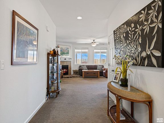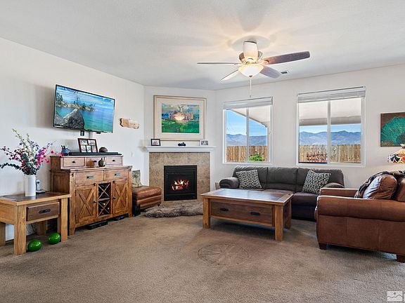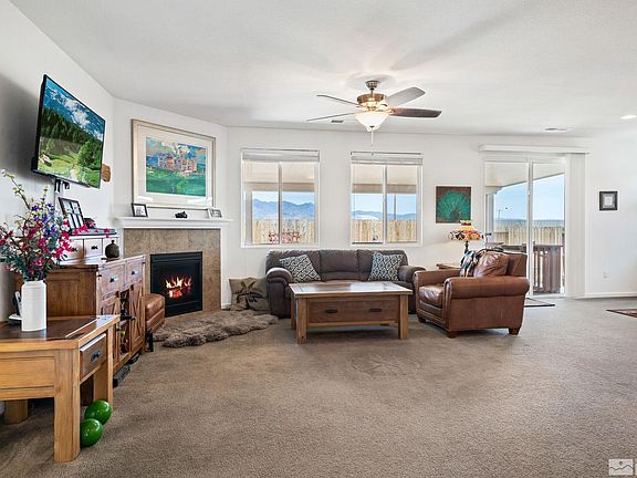 Located on a view lot - views front & back. Move in ready! Beautifully maintained inside & out. The exterior is landscaped with auto sprinklers & drip. Relax & enjoy the backyard view from the spacious covered deck & firepit area. Great location + great open & bright floorplan. Tons of cabinets & pantry in the kitchen w/large center island & breakfast bar. The corner fireplace warms those cool evenings! Large Master Bedroom w/ Walk In Shower*Custom Security Door*Finished Insulated Garage Door*. Refrigerator, Washer, Dryer and TV are included! Call today!
