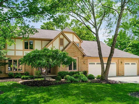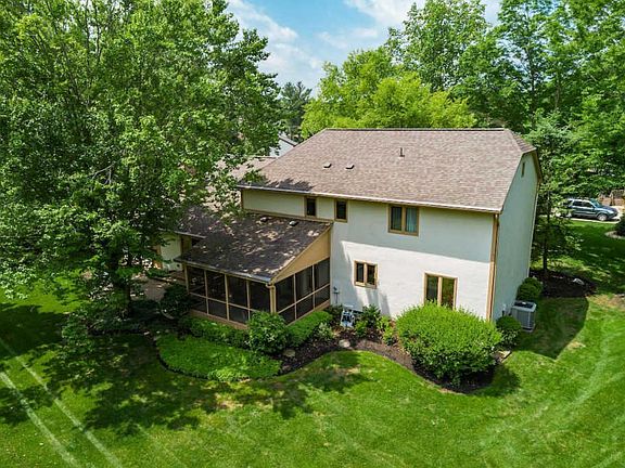 Stunning Powell classic+ Brick/stucco exterior, beautifully landscaped, cut-de-sac .35 acre treed lot. Hrdwd flr entry,wood trim. Main Flr Den w/crown molding,wainscot trim. FLR/DR w/huge picture window for abundance of light, neutral textured berber carpet; treed views out of each window. Beautifully remodeled kitchen (2004) w/ raised granite bar, hrdwd flrs, additional custom 42'' maple cabinetry, upgraded appliances, can and pendant lighting,travertine tile backsplash. Casual eating area opens to Screened porch and vaulted GR. Screened porch opens to pastoral/treed rear yard., paver patio. Loft and expansive Owner's suite w/private bath. Three add'l BR's and shared guest bath. 4-car garage (one bay is tandem.) Easy biking distance to Olde Powell and Powell Pool/Park