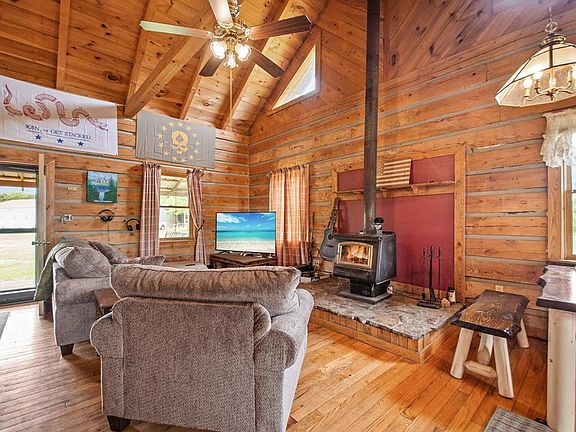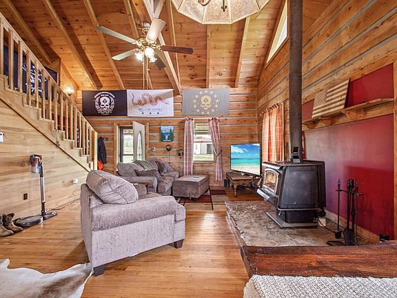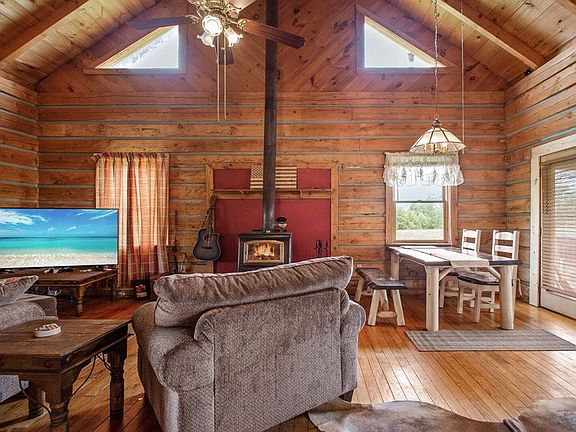 Adorable log cabin located on long gravel driveway back to a beautiful peaceful 40 acres with many possibilities from having farm animals to having multiple building sites or a great investment opportunity to break up the parcel and sell come of the acreage. You could even Air BNB to close proximity to an events ranch. Multiple possibilities with this one! Don't miss!