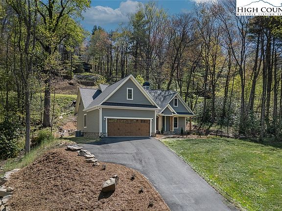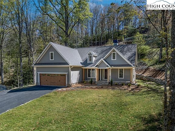 Handsome new construction home in the desirable gated community of Arrowhead, only minutes to Blowing Rock and the Blue Ridge Parkway. Newly paved driveway and flagstone steps lead to a covered flagstone porch and timbered entry. Light-filled, open-concept floor plan offers three bedrooms, two full baths, a kitchen, an eating nook, laundry, dining, and living all on the main floor with one large bonus room upstairs with a vaulted ceiling and mini-split. Innovative design places the primary bedroom on one side of the home for quiet enjoyment. Quality craftsmanship is found throughout the home, including wide-plank vinyl flooring, tray ceilings, a gas fireplace, a modern kitchen with stainless steel appliances, a spacious laundry room with easy access to the attached two-car garage, one door and finished garage floor — plus architectural shingles. The primary bedroom features porcelain tile floors, a soaking tub, double vanities, and a tiled walk-in shower with a glass door. Two guest rooms share a second full bath. The large lot has been nicely landscaped and has a fire pit. Stunning boulder retaining walls are found lining one side of the driveway and in the backyard where one can enjoy the flagstone patio. The lovely neighborhood of Arrowhead is less than five miles to downtown Blowing Rock and has underground utilities, beautiful landscaping, and recently repaved roads. Home has been tastefully staged and a furnishings/staging package is available for purchase. No short-term rentals less than 30 days.