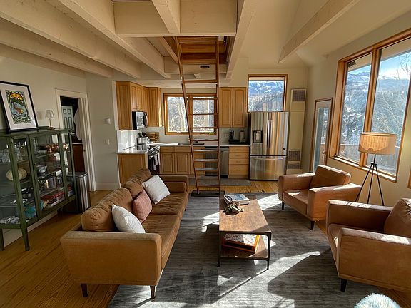 This home is not listed on Craigslist. That is a scam. Beautiful views of Mt. Wilson and town from a cozy home perched on a hilltop in a quiet neighborhood. The home is fully furnished ready for move-in. The rate is inclusive of utilities (electricity, gas, internet, water, sewer, trash). Downstairs is master with full bath and king size bed. Upstairs is great room with loft that also has a king size bed. ~10 minutes to both town of Telluride & Mountain Village. Directly adjacent to great hiking and mountain bike trails. Home availability starting in February: - Monthly (AirBnB pricing - check out on that platform) - 6-12 month Term lease as depicted in this posting Furnished with living essentials Utilities included No smoking 3 outside parking spots