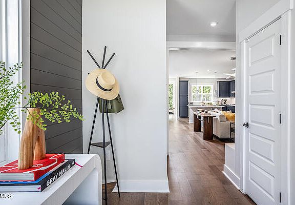 Seller will review any offers by Wednesday, May 29th. Limited Opportunities! Former model home END UNIT! Welcome to the epitome of modern living in Chatham Park, one of the most sought-after communities in the area! This home offers a serene wood view from its prime location on a level homesite. Step into the gourmet kitchen, a culinary haven adorned with navy cabinets and Miami white quartz countertops. Upgraded gas appliances, roll out trays and under cabinet lighting make meal preparation a breeze, while designer modern lighting and trim details add a touch of glamour. Engineered hardwood flooring flows seamlessly throughout. As you make your way to the second floor, you'll be greeted by an open rail design. Additional windows flood the home with natural light, accentuating its airy ambiance. Tiled primary shower with a seat, tiled secondary bath and laundry room. Green living meets convenience with an EV outlet in the painted garage, making it easy to charge your electric vehicle while enjoying the perks of homeownership. Smart home features, including a Ring doorbell, surge protector, WIFI enabled front door and lights add an extra layer of security and convenience, while the mud area bench provides a practical yet stylish solution for organization. HOA includes maintenance of lawn, landscaping, roof, and siding. Nestled within the expansive greenery and thoughtful urban planning of Chatham Park, residents enjoy a lifestyle that seamlessly combines the tranquility of nature with the convenience of modern amenities. From picturesque parks and paved trails to walkable retail and dining destinations, Chatham Park offers something for everyone. Remainder of home warranty is transferrable.