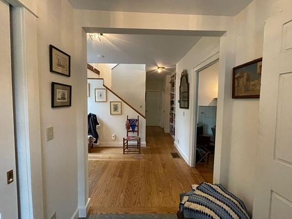 CASTINE: Idyllic cape on Perkins Street with some harbor views. Floor plan includes first floor bedroom and full bath, large eat-in kitchen with some water views, formal living room with wood burning fireplace. Upstairs are two bedrooms with shared hallway bath. Wood and tile floors. High ceilings. Attractive gardens and stone walls.