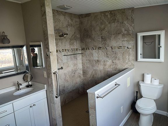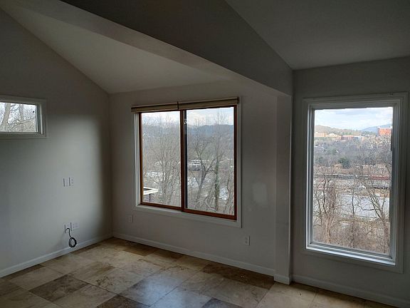 Stunning views of River Arts District (RAD), French Broad River and Downtown Asheville. Very rare, never rented unfurnished hillside house within walking distance to West Asheville, New Belgium, River Arts District, French Broad River Park and Greenway. Newly renovated kitchen with large island and luxurious master bathroom with heated floors. Oversized master bedroom with vaulted ceiling, walk-in closet, laundry, and balcony. Vaulted den/family room off the open concept kitchen with heated travertine flooring and large windows taking advantage of the light and incredible view. Low maintenance original hardwood and luxury vinyl plank flooring. Convenient guest bathroom and bedroom. Freshly painted throughout. Covered front porch and spacious fenced front garden with beautiful perennials. Driveway for two cars and custom outdoor shed ready for your mountain bikes. Additional large storage room in the basement included. House has central heat (natural gas) and air conditioning. ADT alarm system installed. Please note; there is a separately rented unit in the lower level. Lease is 12 months. First month, last month and security (1 month) required at lease signing. Water/sewer/garbage/recycling is included as there is a lower unit that is rented separately. Tenant pays electricity, gas, and cable/internet. Tenants responsible for garden maintenance. Applications will be completed online using SmartMove by Transunion paid for directly by the tenant ($42/each). Applications are required for each tenant, and each tenant must sign the lease. Income must be 3x the annual rent. Dog(s) may be permitted upon approval. $300 nonrefundable deposit required per dog. Breed restrictions apply. Sorry, no cats. Absolutely no smoking or vaping on the property. Viewings by appointment only. Please contact owner to make appointment.
