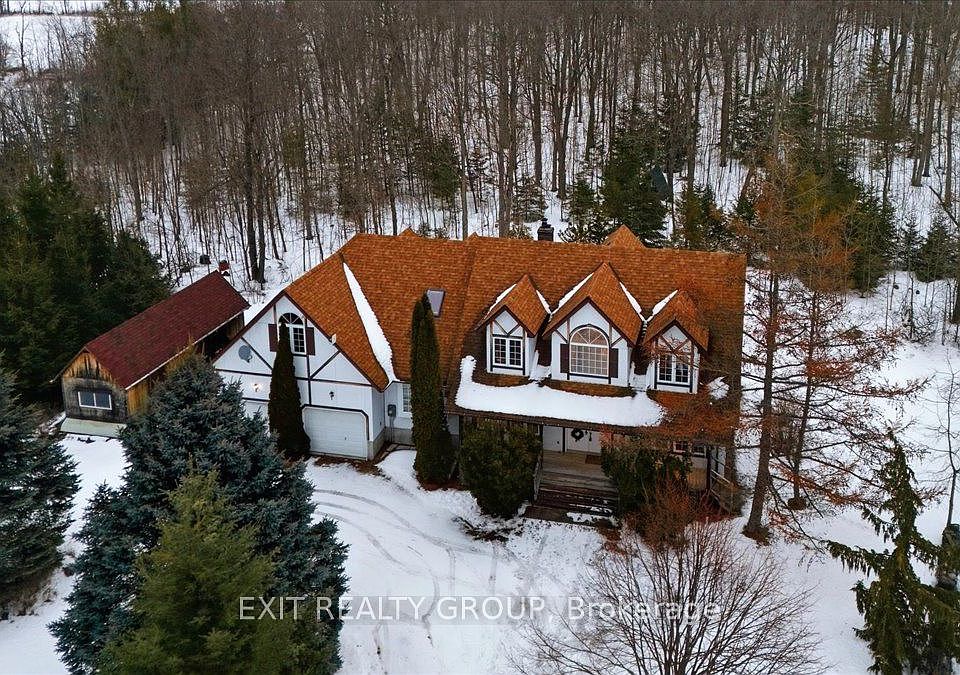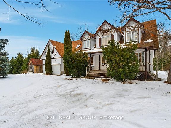 Stunning Cape Cod style 3-bed plus den, 3-bath 2-storey home with an attached 2-car garage and a 10 x 30 outbuilding, situated on over 9 acres. Approximately three-quarters of the property is beautifully treed with a mix of coniferous and deciduous species, offering exceptional privacy and a serene natural setting. Offering a lifestyle of total privacy and unparalleled versatility, this estate is the perfect blend of modern comfort and rural escape. The main level unfolds into an expansive layout designed for both grand entertaining and quiet family mornings. The gourmet country kitchen and sun-drenched breakfast nook serve as the home's hub, centered by a magnificent double-sided fireplace that provides a seamless, cozy transition into the formal living room. A dedicated dining room & a convenient main-level laundry room round out the functional elegance of the first floor. The main-floor primary suite is a true retreat, intentionally separated from the upper bedrooms to ensure maximum privacy. This space features a walk-in closet & a spa-like 5-piece ensuite, offering a tranquil escape at the end of the day. Upstairs, the home continues to impress with two additional generously sized bedrooms, a den, and a bright 4-piece bathroom, perfect for family or guests. Endless Potential for those looking to expand their living space, the lower level remains a blank canvas, ready for your finishing touches-whether you envision a home theatre, a personal gym, or a games room. The 2-car garage boasts a workshop at the rear & a charming loft above-an ideal setup for a home-based business, an art studio, or a private guest suite-along with the additional 10 x 30 outbuilding. The shed is equipped with hydro service, offering both 120V & 240V power for added functionality. Ryan Road is serviced by a school bus, making this an excellent option for families. This property is more than just a home; it is an opportunity to cultivate the life you've always dreamed of. Don't miss out!