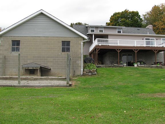 The ultimate Great Room w/brand new hard maple kit. w/granite/breakfast island-seats 5/double conv.oven/5 burner gas cooktop/prep sink/wine frig/tile backsplash/pendant & recess lighting. Stone FP/vaulted ceiling in LR. DR exits onto upper deck o/looks beautiful view of rear yard--all accented to perfection w/H/W floor. Amenities of this 5 BR home also include 2 car int. garage, 2 car det. gar., 2 story barn w/5-14 doors (50x56) - 1 section 26x30/heated/cement/water/30x56 loft. Potting shed.Chicken coop
