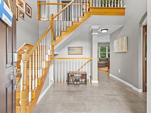 Perched at the end of a quiet cul-de-sac, this custom 4 bedroom colonial has it all. Step into the expansive foyer to experience 9ft ceilings & hardwood floors. Relax in the inviting living room, complete with a wood-burning fireplace & custom built-ins. Host gatherings in the elegant formal dining room or retreat to the office/study through custom mahogany doors for a moment of quiet. The kitchen boasts all the essentials, featuring a spacious center island, quartz countertops, tiled floors, custom-built pantry shelving, and stainless steel appliances. Large tiled mudroom off the garage with washer/dryer and 1/2 bath round out the main level. Upstairs features three bedrooms, full bathroom and large primary suite with two vanities, soaking tub and shower. Partially finished basement with 1/2 bathroom can be used as additional living space, family room or playroom. Plenty of storage on the unfinished side with shop table to tinker and stairs directly up to the garage. Countless improvements throughout allow for you to enjoy low maintenance living including central A/C, newer roof, smart thermostats, updating lighting and so much more. Head outside to the patio and relax in the private backyard surrounded by mature trees which backs up to large common area w/informal trail network! Enjoy the HOA amenities of in-ground pool, bathroom/changing facilities, tennis/basketball courts right out your front door. Located minutes from parks, schools, shopping, interstate and more!