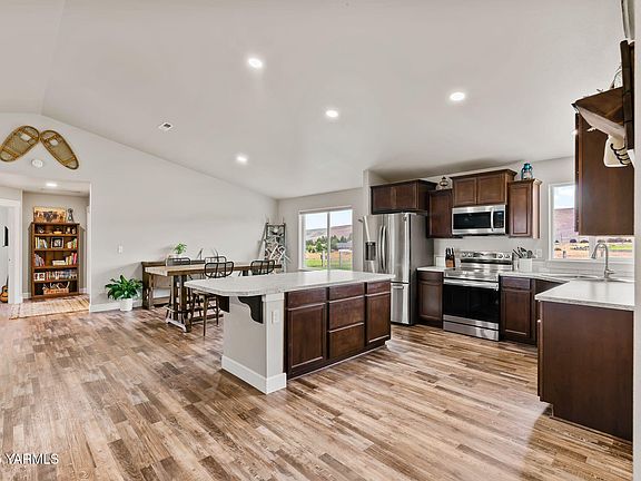 Love the idea of country living without giving up modern comfort? This 2021-built West Valley home offers the best of both worlds -- no HOA, no restrictions, just open space and freedom to live your way.Set on 5 level acres with fenced pasture, this single-level 2,238 sq. ft. home is designed for easy living. The open floor plan features vaulted ceilings, durable LVP flooring, and a spacious kitchen with a walk-through butler's pantry -- perfect for entertaining or everyday convenience. Large windows frame wide-open views of Yakima's countryside, filling the home with natural light and peaceful vibes.With 4 bedrooms and 2 full baths, there's room for everyone -- or space to create a home office, gym, or hobby room. The fully fenced backyard and covered patio invite year-round outdoor living. Bring your animals, your RV, or your dreams -- there's room for all of it here.Enjoy the quiet, starry nights, and wide-open skies that come with true country living, all just minutes from town. If you're ready for more space, more freedom, and less hassle, this is the one.