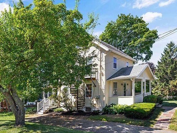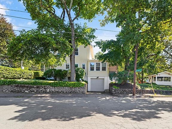 Two family home nicely sited on a landscaped knoll in a popular residential location. The building features a 4 room 1st floor 2 bedroom with a 2nd floor 3 room unit. The 1st floor apartment has a garage under and the only basement access for additional storage. There is an fully applianced eat in kitchen open to the large 25X11 combination living room and dining/office area. Access to the top floor unit is through a large open front porch. This kitchen features new stainless steel appliances, (refrigerator, DW and stove) There is also a new tiled full bath and hardwood floors. The large lot has a pretty 12X10 detached screen house nestled among mature plantings in the private back yard. Each unit has an individual driveway and parking. There are separate oil burners and electric meters.