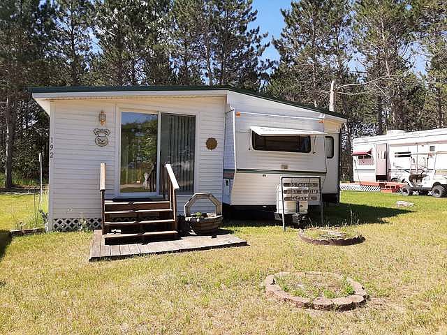 Plenty of Summer to Enjoy! Perfect getaway for the budget minded shopper.Neat and clean camper with addition.Large deck off back with firepit area. 2 sheds for the toys. Backs up to woods for the Up North feel. Access to amenities of Sandy Shores Resort. Nice beach, playground, basketball court, volley ball, putt putt golf. Or how about a game of candy bar bingo under the Pavillion?