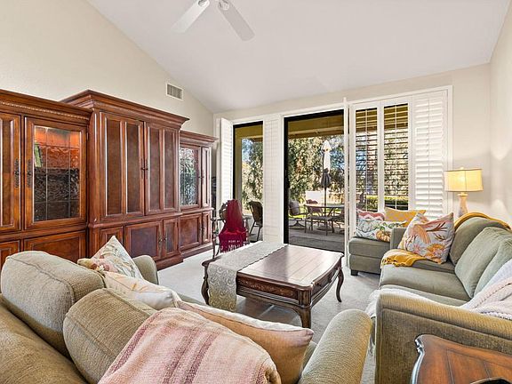 Fantastic opportunity and value in Monterey CC! 2bd/2ba, 1303 sq/ft, 20 Max Plan in a quiet cul-de-sac, interior location on the 7th hole of the South course. Popular split bedrooms floorplan with ensuite baths provides separation & privacy for you and your guests. Sits on an elevated lot with wonderful fairway views. High ceilings in living room, neutral carpet & tile throughout. Kitchen features updated counters, newer appliances, and recessed lighting. Open patio is ideal for enjoying the beautiful desert weather and entertaining family and friends. Spacious 2-car garage. Just steps to one of the best community pools in the development. 27 holes of Ted Robinson designed golf, 13 tennis courts, 20 pickleball courts, bocce, and 37 pools for your enjoyment. Centrally located in the heart of Palm Desert, Monterey CC is one of the most active clubs in the desert.