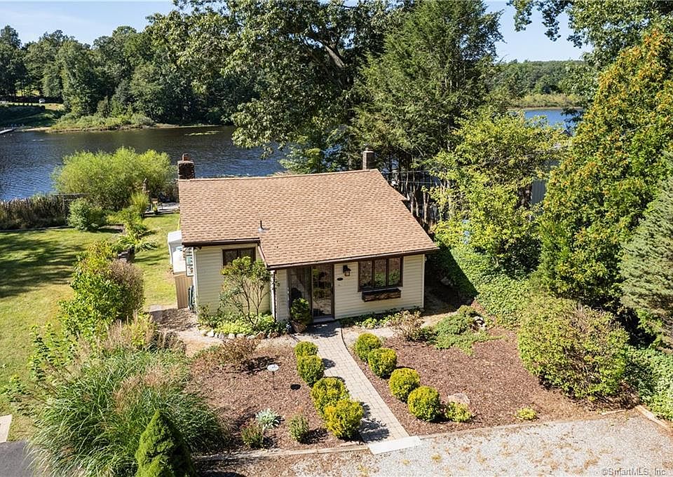 This sweet lakefront property, features its own private sandy beach and breathtaking views on West Lake. Whether you seek a year-round lakefront haven or a tranquil getaway, this charming ranch home has it all. Upon entering through inviting French sliding doors, you'll find a practical mudroom with laundry facilities, seamlessly connecting to the main living area. The tastefully updated kitchen has ample shaker-style cabinetry with glass inserts and a garden window that floods the space with natural light. An open floor plan effortlessly connects the kitchen to the living and dining areas. The living room, with its vaulted ceilings and rustic wood beams, is centered by a beautifully crafted, floor-to-ceiling stone gas fireplace, creating a warm and inviting focal point. This main living area leads to a sunroom with sliders to the deck. The home has 2 bedrooms and a generously-sized, updated bathroom, complete with a skylight to amplify the natural light. The primary bedroom has direct access to the backyard oasis, allowing you to wake up to serene lake views. The property's sandy beach area includes an additional deck, perfect for up close lakeside lounging and fun. Meticulously maintained over the past two decades, the home boasts a new roof and newer mechanicals. Embrace the chance to make this lakefront gem your new home. From tranquil mornings by the water to captivating sunsets, this property promises an exceptional living experience that you won't want to miss out on