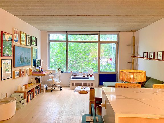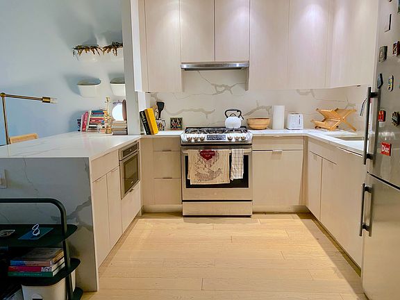 No fee 1 bed, 1 bath modern apartment featuring spacious living area with an open kitchen, in-unit washer/dryer, dishwasher and exposed concrete ceilings. Residence Features: - Exposed concrete ceilings - In unit washer & dryer - Wide-plank hardwood floors - Waterfall countertop - Over-sized windows - Brand new appliances - Calacatta stone counter-tops and backsplash - Nest thermostat Building Amenities: - Furnished roof deck w/ BBQ grill - Fitness Center - Smartphone Video Intercom Transportation: A few blocks from the G train at Bedford-Nostrand School: A few blocks from Pratt Institute Park: Walking distance to Fort Greene Park Tenant would be responsible for all utilities, except water.