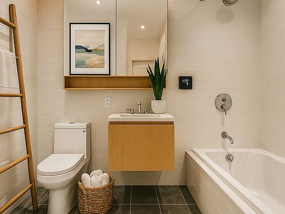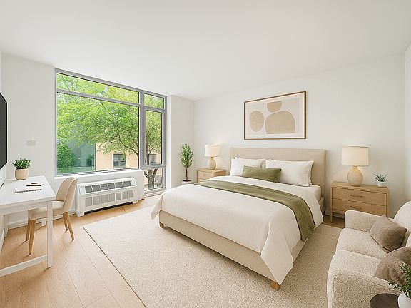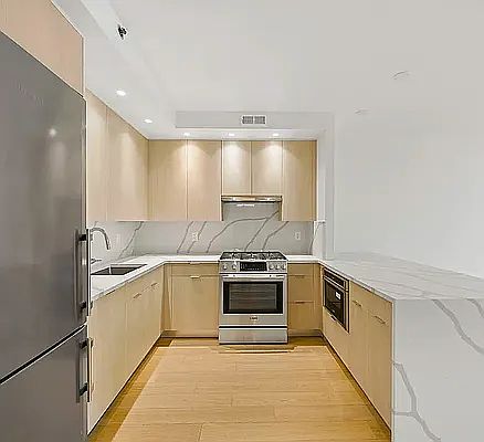 Be the very first to live in this in this brand-new gut-renovated one bedroom condo. Flooded with light and complete with stunning high-end condo finishes, your dream home is here! Deeded on-site parking spot available separately, please inquire for details! The apartment features Calacatta Marble countertops and backsplashes, wide-plank hardwood floors, custom millwork, brand new PTAC units controlled on Nest Thermostats, your very own in-unit stacked washer/dryer and a wall of oversized windows with tranquil tree-top views in both the living room and bedroom. The oversized U-shaped kitchen is a chef's dream, and is outfitted with brand new stainless steel appliances including a Liebherr refrigerator with an integrated ice maker, a wood-paneled dishwasher, a built-in microwave, a 5-burner range and oven, and tons of incredible custom cabinet space. The kitchen is complete with a fully-vented hood, Calacatta Marble countertops and backsplashes, and custom under cabinet lighting, as well as a large Calacatta Marble breakfast bar that opens into the living room. The expansive living room can easily accommodate both living and dining needs, and is filled with natural light all day. The bedroom comfortably fits a king-sized bed with additional furniture and features a generous double closet. The oversized bathroom completes the home with a deep soaking tub, custom vanity, under-sink storage, and laundry area. Located at the crossroads of Bedford-Stuyvesant, Clinton Hill and South Williamsburg, 192 Spencer is on a lovely tree-lined block surrounded by great coffee shops, restaurants and nightlife, and a short walk to the G train. Building amenities include an expansive and furnished rooftop with a grill, a top-floor windowed gym, Smartphone Video Intercom and Parking. Disclaimer: Photos have been virtually staged for illustrative purposes only. Some images also include additional renderings. All dimensions are approximate. Associated fees: - $20 Credit Check Fee (This is the only fee to apply per applicant, the fees below are paid once you are approved and have a fully executed lease) - $500 Condo Application Review Fee (Payable to Condo) - $500 Move In Fee (Payable to Condo) - $500 Refundable Move In Deposit (Fully Refundable upon successful move in if no damages to the building)