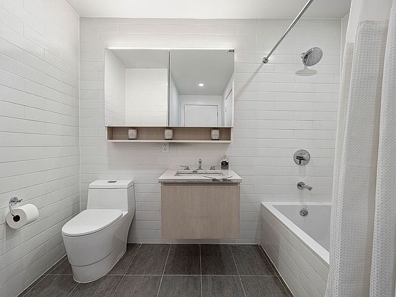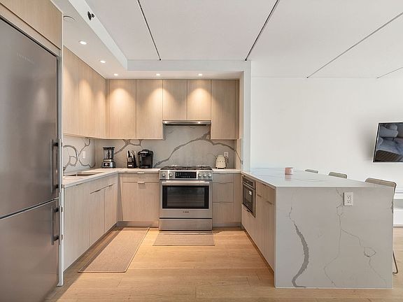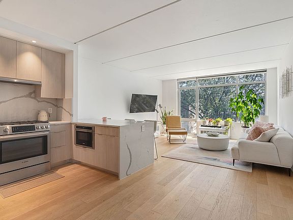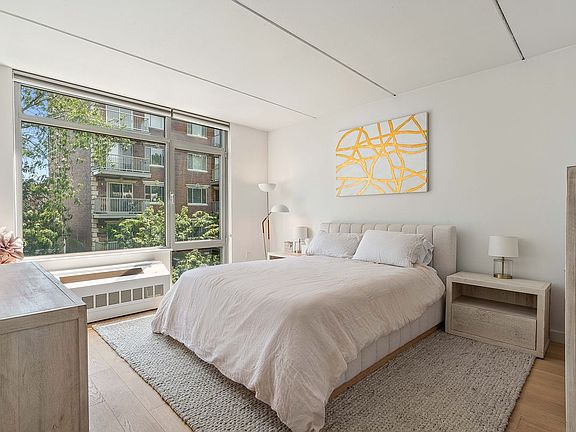Welcome to 192 Spencer Apt 4E, this spacious one-bedroom is filled with natural light, offering an open and airy feel with oversized windows and incredible layout. The kitchen includes Calacatta stone countertops, custom cabinetry, and high-end Bosch and Liebherr appliances. Other appliances and features include a Nest thermostat and Bosch washer and dryer. The building offers a rooftop, fitness center, and on-site parking.