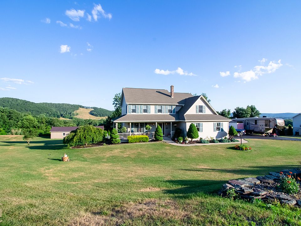- Features: Views/Scenic, Lot Description/Level, General/Ceiling Fan(s), Kitchen Features/Granite Countertops, General/Smoke Detector, Area Amenities/Outdoor Activities, Garage Count/2 Car Garage, Age/21-30 Years Old, Exterior/Storage Shed, Water/Well, Kitchen Features/Eat-in Kitchen, Lot Description/Access Type - Road, Exterior/Out Building, Lot Size/1-2 Acres, Fencing/Partially Fenced, Road Type/Private Road, Bath Features/Tub and Shower, General/Storage Area, Kitchen Features/Breakfast Bar, Exterior/Sidewalk, General/Workshop, Sewer/Mound, General/Window Treatments, Kitchen Features/Kitchen Facilities, Area Description/Mountain, Interior/In-law Suite, Flooring/Marble