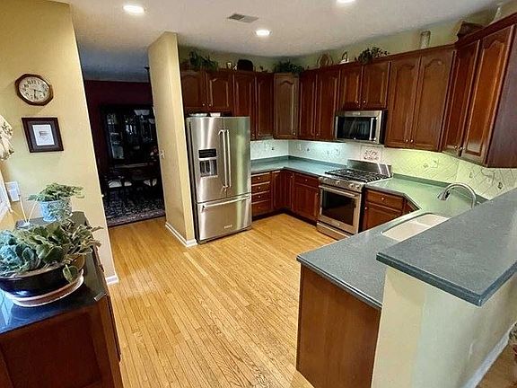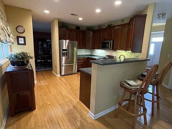 First time OFFERED! Wonderful neighborhood. Brick front colonial set on a large, lushly landscaped lot at the top of the street. Updated stainless appliances. Hardwood floors on the first floor. True first floor bedroom with access to a newly updated bath. This five bedroom three full bath is a must see. Kitchen is open to two-story great room. Dining room is open to light and bright living room. Laundry room is off the garage area. Upstairs features Primary suite with Whirlpool tub, separate shower and 2 Walk-in closets. 3 more bedrooms share another updated full bath. Lower level is finished - plenty of room for entertaining or gym equipment. PLUS STORAGE GALORE!**NEWER appliances, updated baths. and recently replaced AC and furnace Don't let this fabulous home get away!!