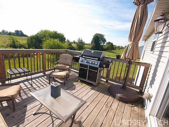 A Design for Today and Beyond! Modern spacious Kitchen with Center Island, snack bar, appliances and dining area. Lower Level features a family room that will be loved and enjoyed. Master suite with walk in closet and spacious bath. Walk out to patio area for outdoor entertaining and upper level deck overlooking a Country setting and firepit. Large storage shed, Home is ready for new owners to take over, Home Warranty too.