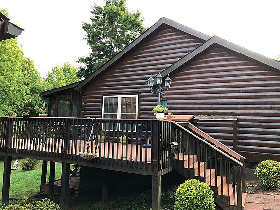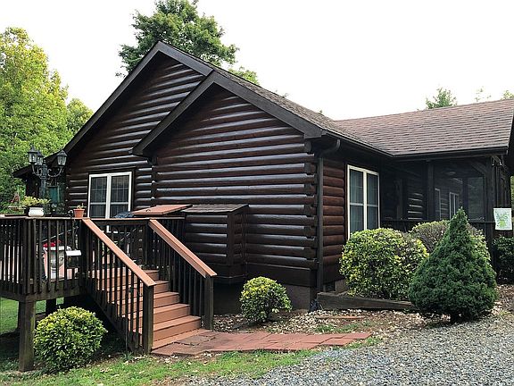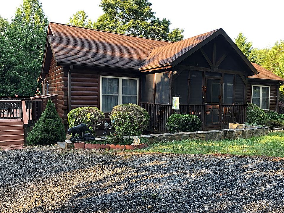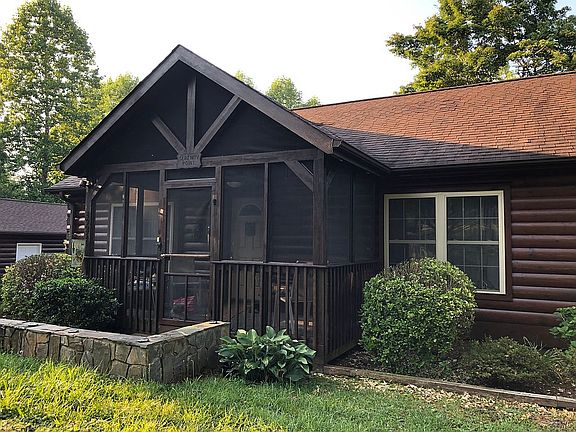 Let the serene, country roads of Lake Lure lead you to this 3BD 2BA mountain retreat! The cheerful log cabin is located on a 2+ acre lot with many mature trees & fruit trees inclunding: Golden Delicious, Crabapple and pear. Enjoy bird-watching and breathe in the fresh mountain air from the front screened porch or listen to the relaxing sounds of the babbling stream from the back screened porch. Entertain friends & family on the oversized, open deck. The open concept and a large kitchen with dining room family room combo allow you to enjoy time with friends and family while you cook. The owner's bedroom has an en suite with a tub shower combo. All the bedrooms are comfortable and spacious. A guest bath with standing shower is conveniently located off the hall. This cabin is unique due to a 2 car, detached garage perfect to keep your cars out of the snow. A semi-circular driveway is punctuated by stone columns with carriage lights. The unfinished basement allows for additional storage. Home was painted in June 2021. This home is being sold mostly furnished (some items do not convey). The community features gated access, a playground and a community pavilion. This is the home everyone is looking for!