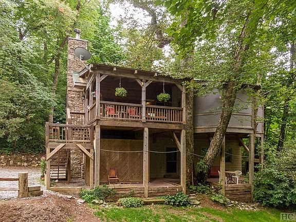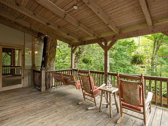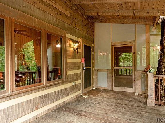 This quintessential, rustic mountain cabin and stream in the woods is waiting for you! With hand-sawn, log beams throughout its main floor, the cabin's cozy living area includes vaulted ceilings, wide plank wood floors, and a wood-burning fireplace. The dining room opens to the large kitchen which features an island, a gas stove, a pantry, a dumb waiter and an exterior access door leading to the back deck. The spacious screened and open, covered decks are perfect for dining or lounging while overlooking the bold and beautiful Cedar Creek stream, which provides just the right ambiance - soothing yet not so loud as to dominate the setting. Located on the main level is the owner's suite with a jetted tub, separate shower, double vanity sink, walk-in closet and French doors leading to the deck. The lower level features a den/recreation room space with plumbing installed along one wall for a potential kitchenette. Two more bedrooms with a "Jack & Jill" bath and a hall to the laundry closet with a separate exterior entrance are also found on the lower level. A single-car garage with a small workshop space finishes out this floor plan. This peaceful and relaxing setting is made complete with a fire pit, a hammock area and a place to walk to the stream with kids or pets to play and explore. The seller has enhanced the view of the stream and enlarged the parking area for easy turnaround. All of this is found just 10 minutes from the wonderful restaurants and shopping in Cashiers. Or, even closer is Signal Ridge Marina and beautiful Lake Glenville. Call today for your private tour!