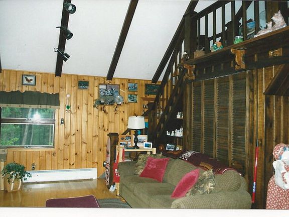 This is a very attractive Chalet located in an attractive mountain setting. Home is located near Titus Mountain ski area and golf course. Paved u shaped driveway has attractive flower/shrub garden in the outer perimeter. This home is heated by an outdooor wood stove through hot water baseboard system. Garage is insulated and heated from the same heating system. Metal roof and septic system are two years old.