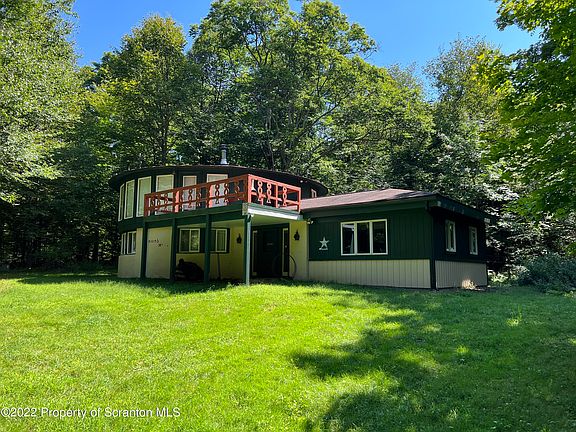 Great round house on 15.85 wooded acres just outside of Elkdale and 10 minutes from Elk Mountain. This spacious home is secluded and private. Enter the home through the large foyer on the lower level. Here you will find a large family room with pool table, living room, 3 bedrooms and a full bath. On the main level is an open floor plan with a large living room/dining room combo with freestanding wood burning stove, kitchen, master bedroom and full bathroom. A door from the living room takes you out to the deck, which sits amongst the tree tops. This home has plenty of space for entertaining and so many windows on the main level that it has the feel of a tree house. Close proximity to Elk Mt. Ski resort, several area golf courses and lakes, Forest City and the Casey Highway. This unique home is worth a look., Baths: 1 Bath Lev 1,1 Bath Lev L, Beds: 1 Bed 1st,2+ Bed LL, SqFt Fin - Main: 938.00, SqFt Fin - 3rd: 0.00, Tax Information: Available, SqFt Fin - 2nd: 630.00, Additional Info: This is a round house...all measurements are approximate and not guaranteed. A portion of the lower driveway is shared. This home is being sold mostly furnished.