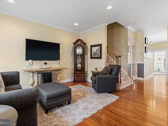 Fabulous Town Center Brick Front Townhome featuring 3 bedrooms and 3.5 baths. First floor offers neutral colors, hardwood flooring and 9 ft ceilings with open floor plan. Upgraded kitchen cabinets with granite, tile backsplash and Stainless Appliances. Moldings, recessed lighting and upgraded fixtures in many rooms make this home a show place. Each bedroom has its own private bath. Basement is fully finished and a decorators dream with built-ins and (2) stone accent walls and hardwood floors. Entire home is tastefully decorated. The exterior features private custom paver patio for your entertaining pleasures. Also concrete/paver off street parking area. No association fees and school bus transportation is located on street in front of home. Located to all major roadways for easy commute to Philadelphia, NYC and the Jersey Shore, as well as the Train station. View this lovely home that shines with pride.