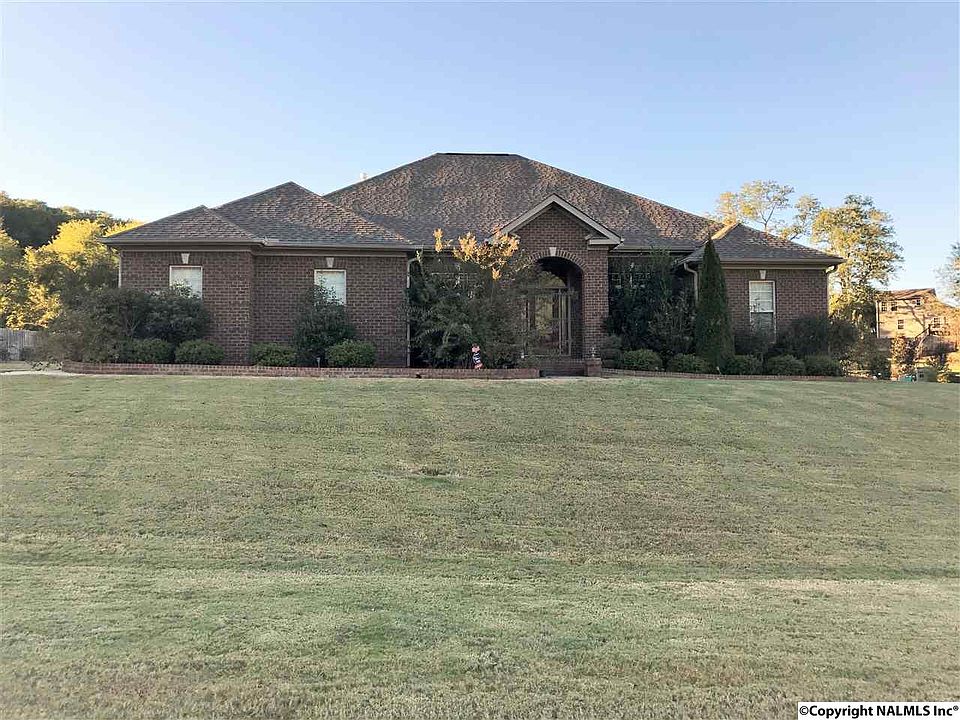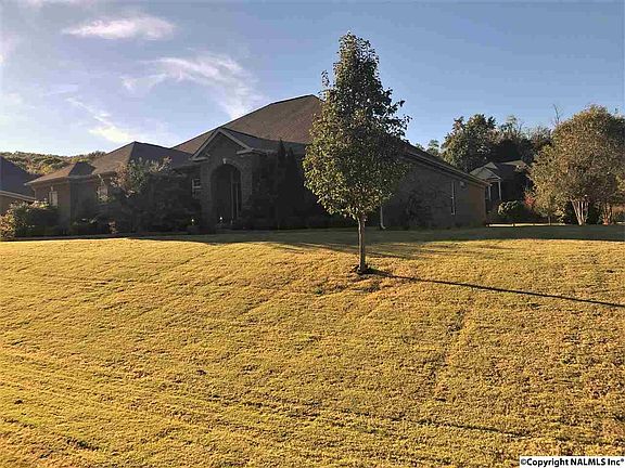 Gorgeous mountain views!! Beautiful full brick rancher features an open floor concept w/office, dining rm,extensive crown, trey ceilings, and a great room finished w/ wood floors and gas log fireplace. The upgraded kitchen is equipped w/ alderwood cabinets, stone backsplash, new stainless appliances, stove top w/microwave, built-in oven, breakfast bar & large eat in area. The isolated master suite features a crown, trey ceiling w/rope lighting, patio access, and a private bath with whirlpool tub, separate shower.Upgraded baths, 3 car garage, hardwoods galore and a water feature for your view. Minutes to Downtown Huntsville Arts & Entertainment District. A must see!!