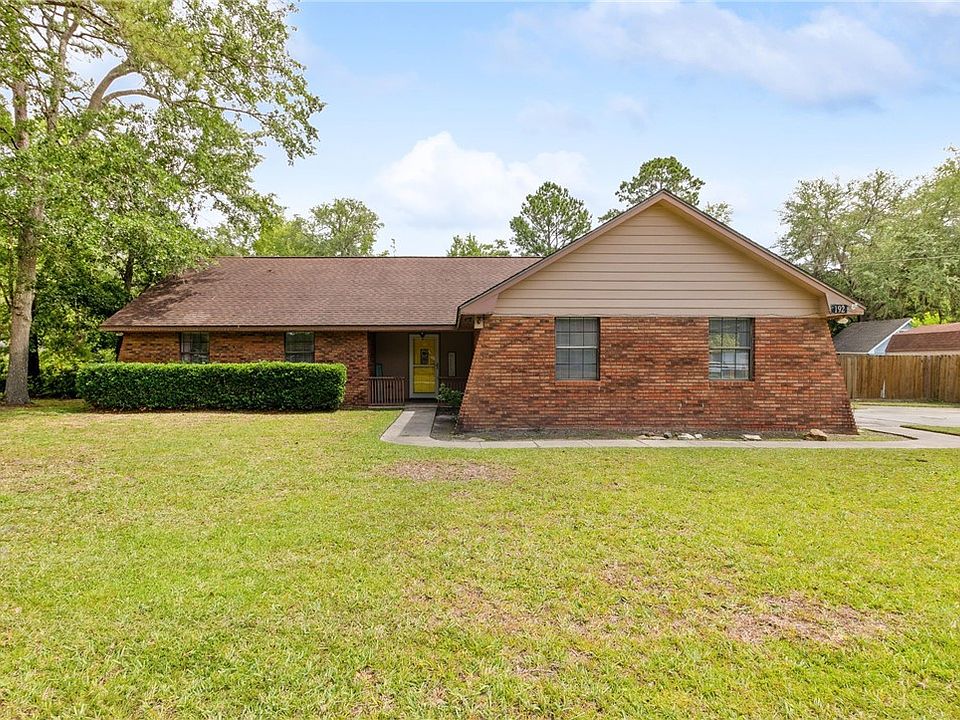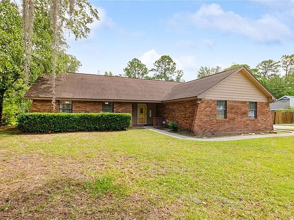 This charming four-sided brick home sits on a spacious corner lot, offering both privacy and curb appeal. Imagine a tire swing swaying from a majestic oak tree in the front yard, inviting you to relax and enjoy the peaceful surroundings. A side-entry double-car garage provides convenience and ample storage. Come inside to an open, airy living space with vaulted ceilings adorned with beautiful wooden beams, creating a warm and inviting atmosphere. The cozy living room features a timeless brick fireplace, perfect for gatherings or quiet evenings at home.The home boasts three comfortable, carpeted bedrooms, each offering a serene retreat. Two full bathrooms are tastefully finished with shiplap accents, adding a touch of character and charm. Fresh, neutral paint throughout creates a versatile backdrop that complements any style. French doors lead out to a fully fenced backyard, where you'll find a generous open patio - ideal for outdoor dining, entertaining, or simply enjoying the fresh air. A convenient storage building out back adds extra space for tools and equipment.The kitchen is a chef's dream, featuring sleek stainless steel appliances, stunning black granite countertops, and a classic subway tile backsplash. A farmhouse sink completes the look, making this space as functional as it is stylish.This home blends comfort, style, and practicality in every detail - a perfect place to create lasting memories. Just 3.8 miles to the Georgia/Florida border and 10.2 miles to Kings Bay Navy Base! Call today to schedule your showing!