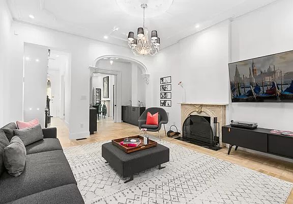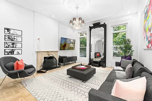 XXX MINT CONDITION TOWNHOUSE...This turn-key home is the perfect opportunity for a discerning buyer looking to own a townhouse without the worry of a renovation. Having undergone an extensive and thoughtful modernization in the past few years the home is the perfect equilibrium of Pre-War charm and urban living. 192 Washington Avenue is a handsome Italianate brownstone located on the endearing tree-lined blocks of Clinton Hill. The Parlor level of the home is voluminous with 10'10" ceilings and is the perfect reception for entertaining, comfortable living, and dinner parties. With a penchant for maintaining the integrity of the home the Pre-War details were brought back to life through a pain-staking restoration of the original crown moldings, restoration of the hand-laid parquet floors and pier mirror, replacement of the wooden balusters with elegant powder-coated steel balusters, and reinstating the marble mantle that adorns the wood-burning fireplace. Other upgrades include strategically placed recessed Lutron lighting with dimmers, a gorgeous cocktail area with wine cooler, sink, and custom cabinetry accentuated with sleek black marble quartz countertops. The Garden level is anchored by a massive kitchen, informal dining, and a large West facing garden. Entering through the private vestibule there is a calming energy to the space with its clean white lines and white oak hardwood floors. The focal point is the designer custom kitchen with a 10' single-slab Calacatta quartz waterfall countertop with book-matched backsplash. The integrated kitchen features a 30" Sub-Zero refrigerator, Wolf double oven and gas range with vent, Bosch dishwasher, filtered and hot water filler, and Kohler sink with insinkerator. Across from the kitchen sits the powder room and laundry station with a brand-new washer and vented dryer. The eat-in kitchen peers out onto the private garden through the newly-installed windows and glass doors. The backyard features re-purposed bluestone and is bounded by a new concrete retaining wall to the rear and newly erected fences on either side. The potential of connecting a gas line for outdoor BBQ'ing can easily be executed as well. Below the garden level sits the basement which contains the mechanicals of the house, which include new gas and sewer lines, abundant storage space, and the original foundation walls which have all been re-pointed and waterproofed. The upper floors of the townhouse accommodate the residential portion of the home and contain four (4) bedrooms and three (3) full bathrooms. The third floor has 9'9" ceilings and is currently laid out as the primary suite with additional secondary bedroom. The primary bedroom has two (2) large Eastern facing windows with a stately decorative fireplace and newly added primary bath with double vanity. The bath is luxurious and wrapped in Italian designer tiles with premium Koehler fixtures, large LED mirror with dimmer and defogger functions, custom glass shower with wall-mounted and rainfall showerheads, and white quartz countertops. Cleverly located past the bathroom is a walk-in robe with custom closets. The secondary bedroom has an adjacent renovated windowed second bathroom with clawfoot tub and radiant flooring. The fourth-floor features two (2) generously-sized bedrooms and a large central skylit bathroom. The main bedroom could easily function as a second primary bedroom and is light infused. The tertiary bedroom can serve multiple functions and is currently used as a guest room and measures 15'2" x 11'10" and has an additional walk-in closet and secondary closet. Additional highlights of this townhouse include a Vivint smart home keypad entry and security, five (5) zone HVAC system, custom closets, smart-wiring in all bedrooms and living space, restoration to the façade, and new concrete sidewalk. The home was a true labor of love and the attention to detail is unmatched.