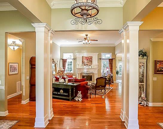 Exquisite Craftsmanship thru-out - ALL Brick home nestled on a 1+ acre wooded lot with NO Backyard neighbors! Hardwood & tile floors, granite counters, moldings galore & elegant columns as you enter. Perfect for entertaining w/outdoor FP & Living Space!