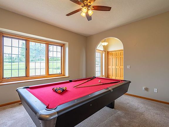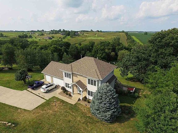 There is a lot of natural light in this gorgeous 4 bedroom home on 2 acres. Open floor plan on main level features high ceilings throughout, a kitchen with stainless steel appliances and walk-in pantry, formal dining room, great room with gas fireplace, and living room with newly painted built-ins. Upstairs you'll find an incredible master with a gas fireplace, along with a large master bathroom including both a jacuzzi bathtub & separate custom tile shower. There are also two more good sized bedrooms and another full bath also located on upstairs. The walkout basement leads out to a private back yard surrounded by timber and a creek along the back. The spacious, heated 3-car garage includes a partially finished room above, that would make a great bonus room or workshop. In 2019, a new roof and water heater were installed. In 2018, both the screened in porth and deck were refinished, as well as fresh paint throughout the main level. It is located in the fantastic Mid-Prairie School District, conveniently located within 15 minutes of both Iowa City and Coralville, has no HOAS, and stunning views of the countryside from every direction. There is an additional 2.6 acre lot next to (which would give you almost 5 acres!) it that is also for sale, with the purchasers of this home having first right of refusal.