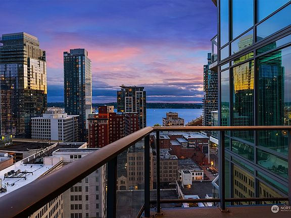 Marquee living in the heart of Seattle. A glittering urban nest at Escala with bird’s eye cityscape & Elliott Bay views combining comfort & style in this prime downtown locale. Experience world class amenities, 24 hr concierge, signature design, + brilliant access to the exciting offerings of the city below. Professionally designed & customized throughout, this home offers functional built-ins, new hardwood floors, 2 separate bedroom suites each with view lanais on either side. Unique, direct access elevator to a semi-private vestibule opens onto a gracious entry hall. Perfect for entertaining, the open floorplan allows for a spacious easy flow with stunning, majestic views over the city, downtown & across the Bay to the Olympic Mountains.