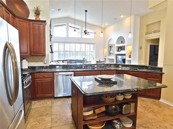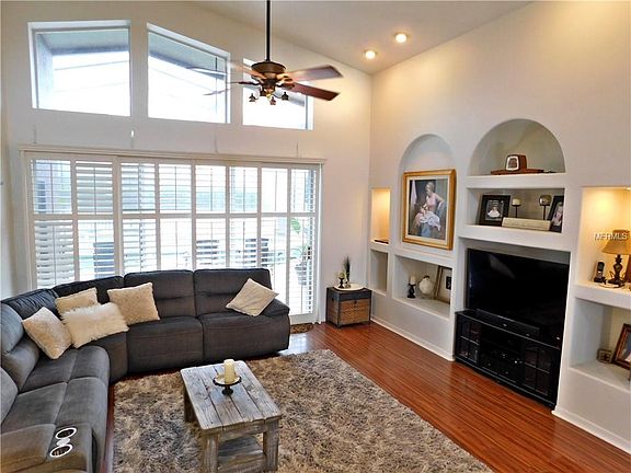 Don't miss this beautiful one of a kind cul-de-sac home located on over 1/3 acre in gated Fox Wood. This 5 bedroom (+Media/Bonus Room) 3 1/2 bath 3-car garage pool home with a Den/Office/Study features every option imaginable! Plantation shutters, stainless steel appliances, travertine tile, upgraded granite kitchen counters, crown molding, french doors, brick-paver pool deck, beautiful laminate floors practically everywhere, pool bath, pool access from Master Bedroom and a fully fenced-in backyard! High vaulted ceilings in the family room and kitchen provides plenty of natural light. The family room freely flows out to the pool deck and is a great entertaining space. The kitchen (stainless steel appliances) features upgraded countertops, storage island and has ample room for a table and chairs creating a true eat-in kitchen. Upstairs is where you will find the huge Media/Bonus Room, a half bath and another bedroom. The downstairs master bedroom is separate from the rest of the home and has direct access to the pool deck. Plenty of brick paver deck space surrounds the screened-in pool and the covered porch that is perfect for entertaining or hosting a pool party. Community park is located just around the corner and Fox Wood is perfectly located in the heart of Trinity. The backyard (approx 150' wide) is fully fenced in and there is just as much room on the sides of the home with great separation from neighboring homes!A home like this only comes along once every couple of years. Make an appointment today!