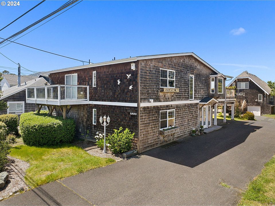 Coastal bliss with this Seaside home, showcasing great ocean & mountain views, moments from the sand, sea, & promenade! Upper level offers a serene retreat w/ generous primary bedroom, second bedroom, & 1.5 baths. The kitchen introduces coastal hues, quartz countertops, & a charming tile backsplash, seamlessly blending into a spacious dining area w/ beam ceilings & an open concept living room and new gas fireplace. Open the slider to reveal an expansive deck w/ continued ocean views & sea breezes. Newly updated flooring downstairs ensures durability & style throughout the cozy family room w/ new gas fireplace & 2 additional bedrooms and bathroom. Outside, low-maintenance native landscaping surrounds the property, w/ carport parking, shingled garden shed, new roof & gutters.