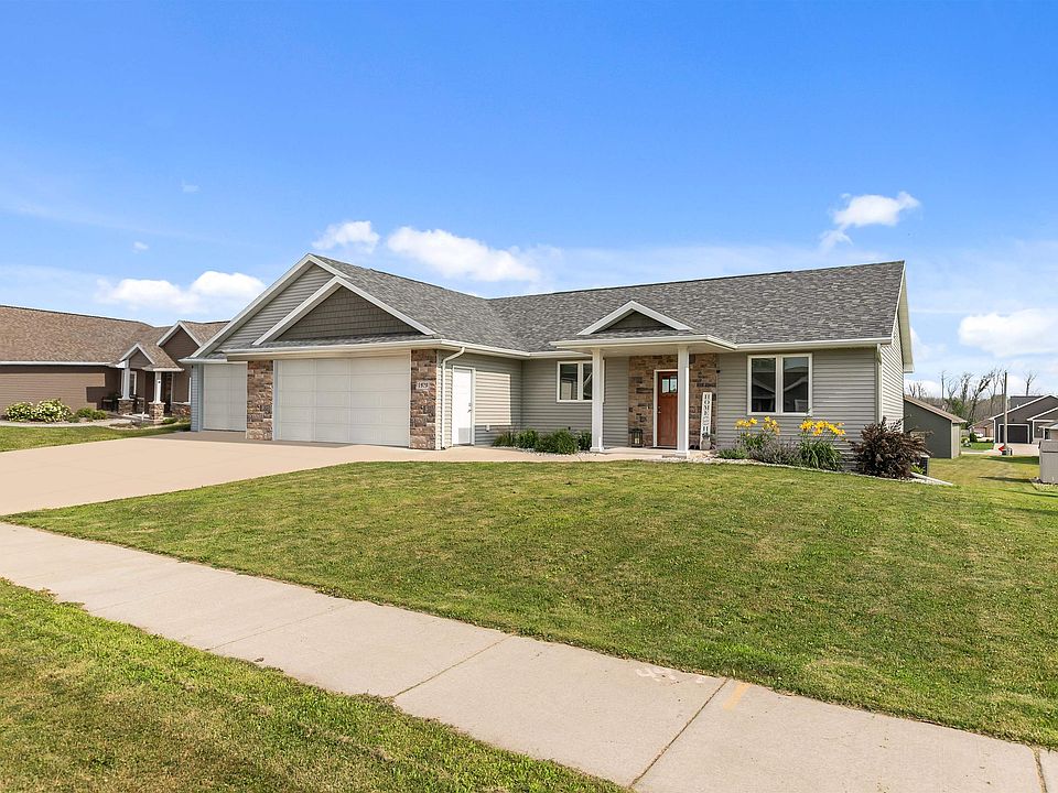 Come see this open concept, split bedroom ranch with abundant natural light in a great location! Featuring stunning granite countertops throughout, hardwood floors, and exposed basement windows for a bright, airy feel. Basement also features a framed room and is stubbed for future bathroom. Fully insulated and drywalled 3.5 car garage with floor drains. Pella windows, garage heater, water softener, water filtration system... the list goes on! This home is perfectly situated on a prime, elevated lot, offering both style and functionality. Home is occupied by tenant on month to month lease.
