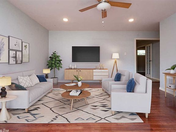 Beautifully updated one level Leawood home. Original hardwoods in living area and bedrooms. Remodeled kitchen has bar seating, tons of natural light and is open to dining room. Master suite with walk-in shower. Office/bonus space with french doors opening to dining/kitchen, could be used as 4th bed. Large laundry room with tons of storage. Numerous updates include new paint on walls and cabinets, roof, HVAC, windows, ductwork, gutters and more.