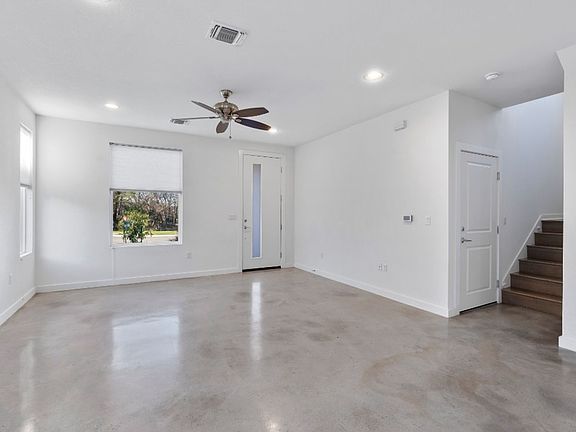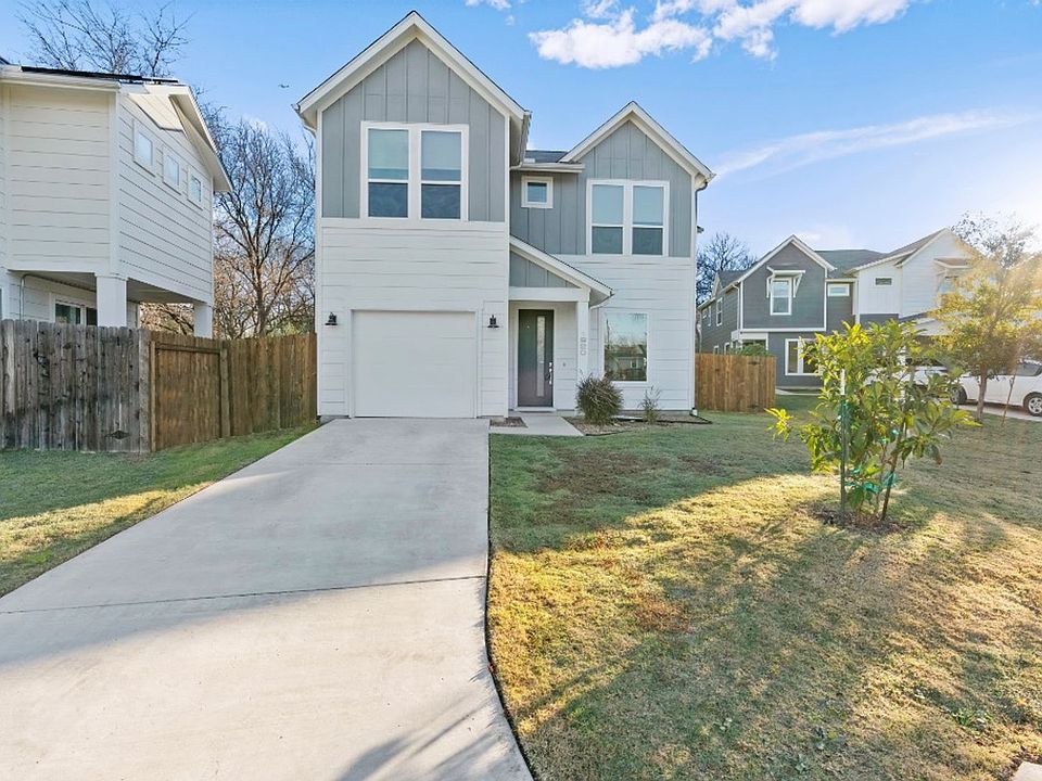 Charming 2-story residence located in the heart of East Austin, positioned at the end of a welcoming cul-de-sac and boasting the absence of an HOA, ready for you June 10th! The main floor unveils a contemporary, open-concept design flooded with natural light. Designed with entertainment in mind, all bedrooms are conveniently situated on the upper level, while a half bath on the main floor adds practicality. Polished concrete floors harmonize with neutral walls and recessed lighting, creating a bright and airy ambiance. The kitchen showcases painted cabinetry, quartz counters, and a breakfast bar that seamlessly connects to the living room. The adjacent dining area features a stylish chandelier and sliding glass doors leading to a backyard retreat, promoting a seamless indoor-outdoor experience. Ascending to the second level, a built-in desk provides an ideal space for remote work or study, allowing each bedroom to fulfill its intended purpose. The primary suite is a haven of light with expansive windows, recessed lighting, and an ensuite bath boasting a dual vanity, large walk-in shower, and a generous walk-in closet. The backyard is thoughtfully designed as a private oasis, enclosed by wood fencing for optimal privacy and bordered by a wooded area for a picturesque view of mature trees. Wood planters enhance the landscaping, while patio extensions offer versatile spaces. Nestled in vibrant East Austin, this location provides unparalleled access to dining, shopping, and entertainment options, including Palomino Coffee just 3 minutes away and Southern Heights Brewing Company a few blocks from your doorstep. Convenience is further heightened by proximity to Norman Sims Elementary and abundant parks, trails, and outdoor recreational opportunities. This home comes equipped with a refrigerator, washer, and dryer, and is pet-friendly for one animal under 20 lbs. Tenants will be required to sign up for the new Resident Perks Program at $25/mo per household.
