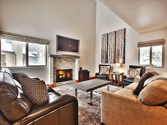 Rare 4-bedroom end unit with private hot tub, backs up to large open grassy common area. This fully furnished turn key rental unit is a very short walk to the cabriolet, public transit and Waldorf gondola. Remodel in 2016 included 4th bedroom addition, all new electrical/ lighting, fireplace, furnishings and more. The unit features a private one car garage with owner lockout, plenty of natural light with vaulted ceilings, a patio and views directly to the cabriolet and mountains beyond.