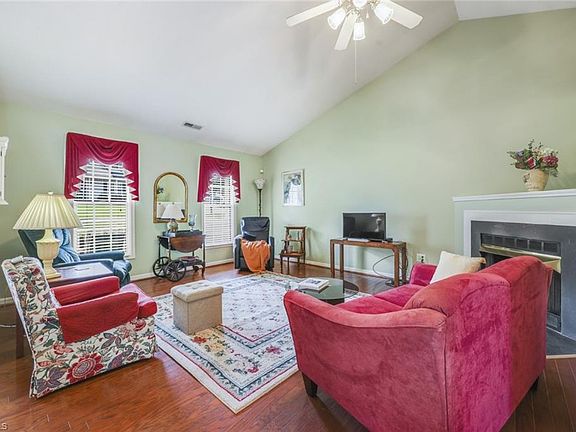 Looking for a one level home with no step entry and an attached garage? This 3BR/2BA home features vaulted ceilings in the living room/dining room & kitchen. Living room features gas log fireplace, wood floors entry, dining room & living room. Primary bedroom with walk-in closet, 2nd bedroom has walk-in closet too! Split bedroom plan. Nice size patio overlooks backyard. Call today to see!