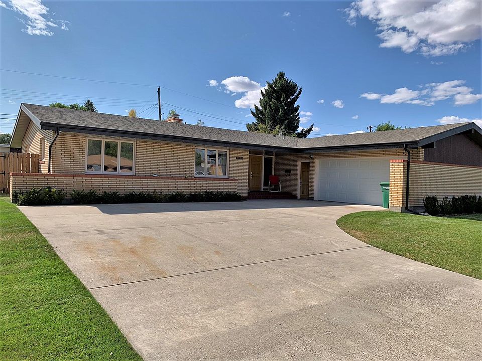 Located in the desirable Country Club Addition this home features 3 bedrooms, 2 bathrooms, including a master suite with French doors to backyard and bath with tile walk-in shower. The living room has vaulted ceilings, a wall of windows looking out to the yard and fireplace with wood/stone surround. Bonus area off the kitchen with bar and main floor laundry. Central Air. The fenced backyard features multiple patios including a large covered patio that invites you to play, eat and relax. Attached heated 2 car garage, sprinkler system, storage shed and new roof in 2017, custom fascia, soffit and gutters.