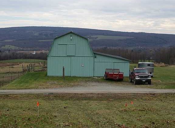 Immaculate custom-built ranch w/excellent views, 32+ prime acres. Amish built barn offers 2 stalls, tack rm, elec, water, hay loft. Potential for 4 add'l stalls. Fenced pastures, woods, stocked pond & riding trails. Full walkout bsmt, high efficency furnace, ac, instant hot water & backup generator. Custom hickory cabinet kitchen w/appliances. Craftsman natural woodwork trim thru-out. Master bath w/jacuzzi tub. Open front porch, screened rear porch. Abv pool. Close to Greenway, 2 Golf Courses & Letchworth State Park. SAVE SCHOOL TAXES transferrable Ag Exemption paperwork filed