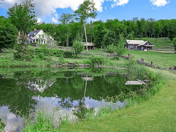 Dreaming of owning an authentic but modern Vermont farmstead? Look no further than Duxbury Hill Farm. Featured in New Old House magazine and consisting of 350+/- acres of open pasture and woodlands, a c2007 historically accurate, energy efficient Greek Revival farmhouse with extraordinary mountain views, 2 antique restored English bay barns, a swimming pond, sugarhouse and a solar array, Duxbury Hill Farm checks all the boxes including fiber optic internet for working from home. The 5 bedroom, 3 bath, 3,756 sf authentic Greek Revival farmhouse with 3 fireplaces is a 'new old house' and appears like its been on the property for a century. Sited to take advantage of the mountain views, its authenticity lies in its careful and accurate design and was created to give the impression the home was built in stages. The wood used for framing, flooring and cabinetry all came from the land, and the stone for masonry and countertops are all from Vermont quarries. The design of the energy efficient doors and windows, as well as their placement throughout the home, are all historically accurate. In all, an extraordinary property destined to be enjoyed for generations.