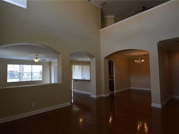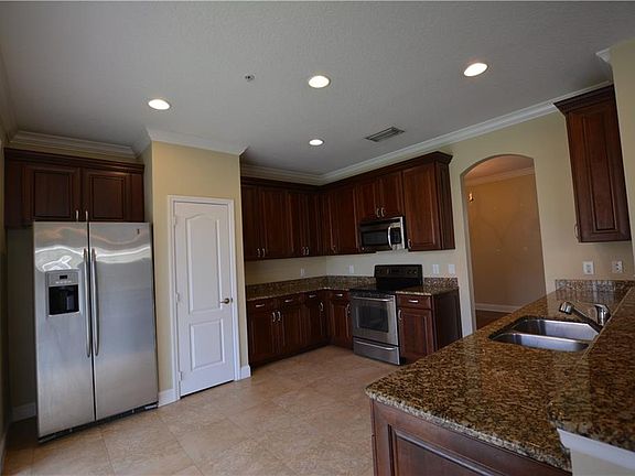 • Interior Features: Ceiling Fans(s), High Ceiling(s), Split Bedroom, Crown Molding, Walk-In Closet(s), Open Floorplan, Solid Wood Cabinets, Eating Space In Kitchen, Kitchen/Family Room Combo, Stone Counters, Thermostat