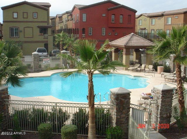 Very spacious and bright corner unit with north-south exposure and view of lush tree-lined walkway to north! Extra-large master suite and full-size laundry room on first floor. Second floor features two additional bedrooms and a bathroom, a very open floorpan with vaulted ceilings and plenty of windows, office nook, north-facing balcony with tree tops creating natural privacy screen, spacious kitchen with dark granite countertops/breakfast bar, and stainless appliances! Outstanding northeast Phoenix gated community with resort-style pool, jacuzzi, club house, movie theatre, fitness center, volleyball court and kid''s playground! Near Desert Ridge, Paradise Valley Mall and Kierland Commons. Easy access to 101 and 51 Freeways!