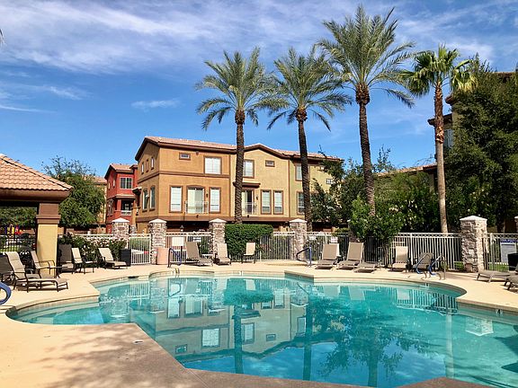 BEST PRICED TOWNHOME IN PARKSIDE!! SECLUDED LOCATION BACK OF DEVELOPMENT, THIS HOME FEATURES A BEAUTIFUL UPGRADED KITCHEN WITH RICH ESPRESSO CABINETRY, LARGE ISLAND W/BREAKFAST BAR, GRANITE SLAB COUNTERTOPS, STAINLESS STEEL APPLIANCE PACKAGE & 2018 NEW S/S REFRIGERATOR W/ICEMAKER, INCLUDED!! SEPARATE KITCHEN NOOK & PANTRY. LIVING ROOM IS LIGHT & BRIGHT, UPDATED W/NEUTRAL WOOD LAMINATE ON MAIN FLOOR, FRESH DECORATOR PAINT, EFFICIENT ''NEST'' THERMOSTAT & SUPER NEAT SKY DOOR BELL & SECURITY SYSTEM W/MOBILE MONITORING!!OPEN CONCEPT W/GREAT ROOM FLOORPLAN. NO CARPET IN HIGH TRAFFIC AREAS! MAIN FLOOR ALSO HAS WALK OUT PATIO SPACE & POWDER BATH. UPSTAIRS YOU'LL FIND AN OVERSIZED MASTER W/ENSUITE COMPLETE WITH GARDEN TUB/SHOWER, DUAL SINK & WALK IN CLOSET. BED 2 ON SPLIT PLAN HAS A SPACIOUS SUITE W/OWN FULL BATH!! CONVENIENT STACKED WASHER/DRYER JUST OUTSIDE THE BEDROOMS AS WELL!! 2 CAR GARAGE THAT IS ACCESSED AT THE FOYER WITH GREAT UNDER STAIR STORAGE & ADDITIONAL ROOM OFF FOYER THAT IS PERFECT FOR SMALL OFFICE OR MUDROOM. YOU'LL LOVE THIS COMMUNITY THAT HAS AWESOME RESORT-STYLE POOL & HOT TUB, CLUBHOUSE COMPLETE WITH FITNESS CENTER & PRIVATE THEATRE ROOM, PLAYGROUND, VOLLEYBALL COURT & MUCH MORE. MINUTES FROM 51 & LOOP 101.