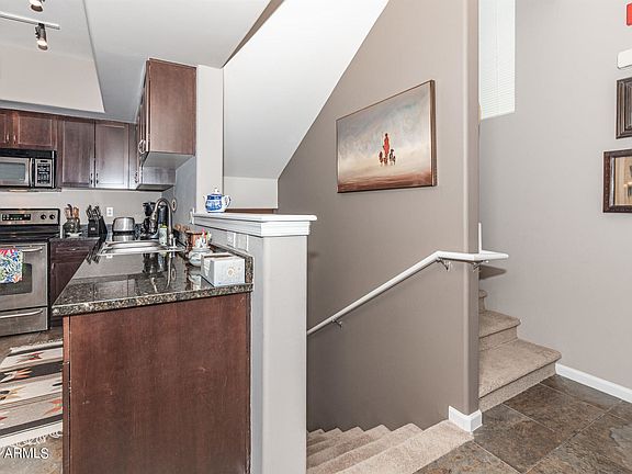 Resort style community close to major Phoenix/Scottsdale attractions and career centers. Clubhouse Community features fitness center, media room, heated pool and spa, BBQ areas and a playground for children. Home features dual master bedrooms. On the second level is the kitchen, main living area, and a powder room. The third level features dual master bedrooms. Washer and dryer are also on the third floor for convenience. Kitchen has granite counter tops, island/breakfast bar, stainless appliances, modern lighting, and dark cabinetry. Tile in the main area and bathrooms with plush carpeting in the bedrooms. New water heater in 2020.