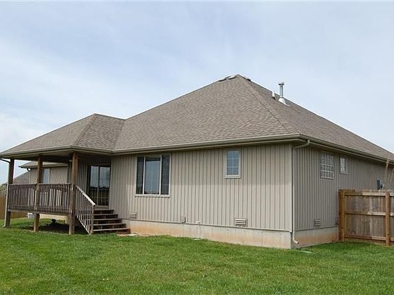 Has features of a custom built house. Many extras include granite tile kitchen counters, standout blend of brick/stone combination, especially at the corner fireplace , extra tall ceiling in living room thats wood, handscraped wood floors at kitchen/dining areas. Textured and glazed walls, several arches. Covered deck, privacy fence. Excellent North Ozark location. 100% financing is still available.